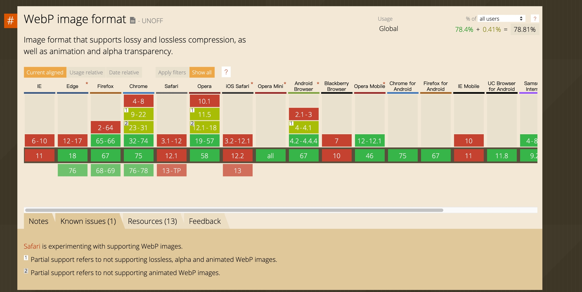 不过 WebP 有有一个缺点,导致还不能大规模使用,那就是兼容性。